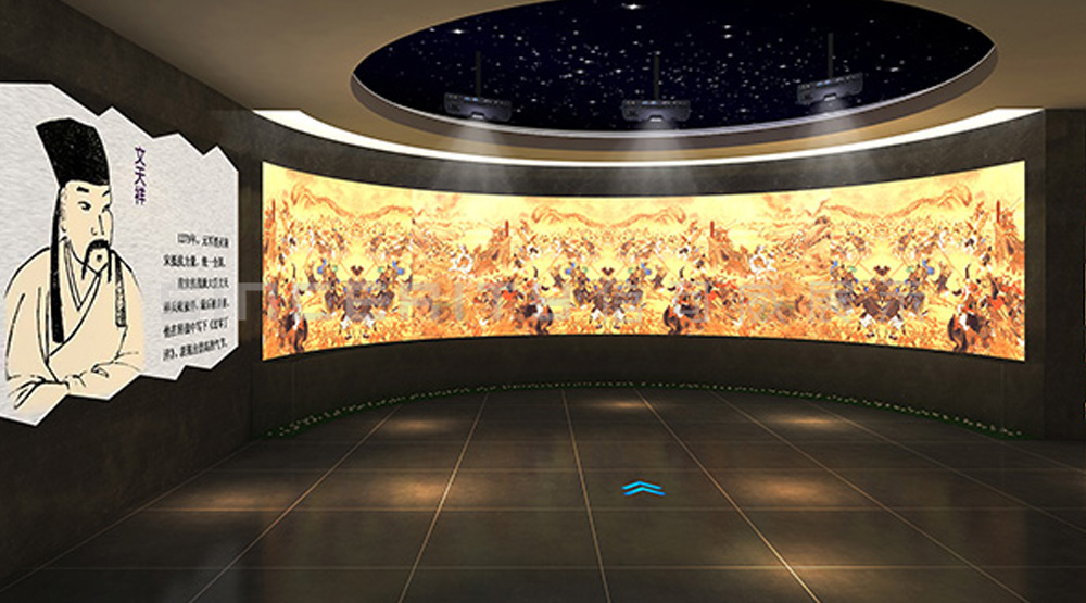 文天祥博物館設計在展陳展在充分展示館藏文物、圖片、文獻的情況下,同時利用藝術手法和科技手段,設計硅膠人物場景、幻影成像、多媒體影像、觸摸屏等多種藝術表現形式來展示歷史事件,大大提高了陳列展示的觀賞性和公眾的參與性及互動性。