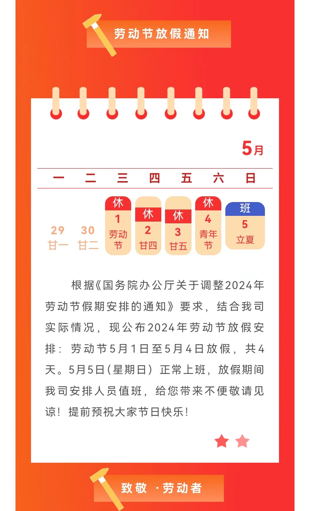 五一放假通知!